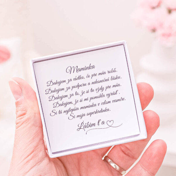 K náramku vám zdarma pribalíme kartičku s venovaním Maminka a darčekovú krabičku. Stačí ho len odovzdať – o ten výnimočný moment je postarané.